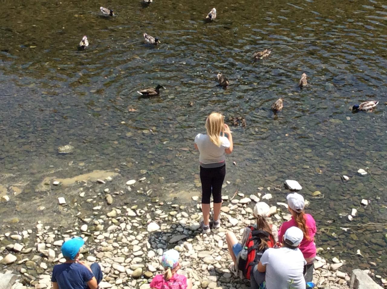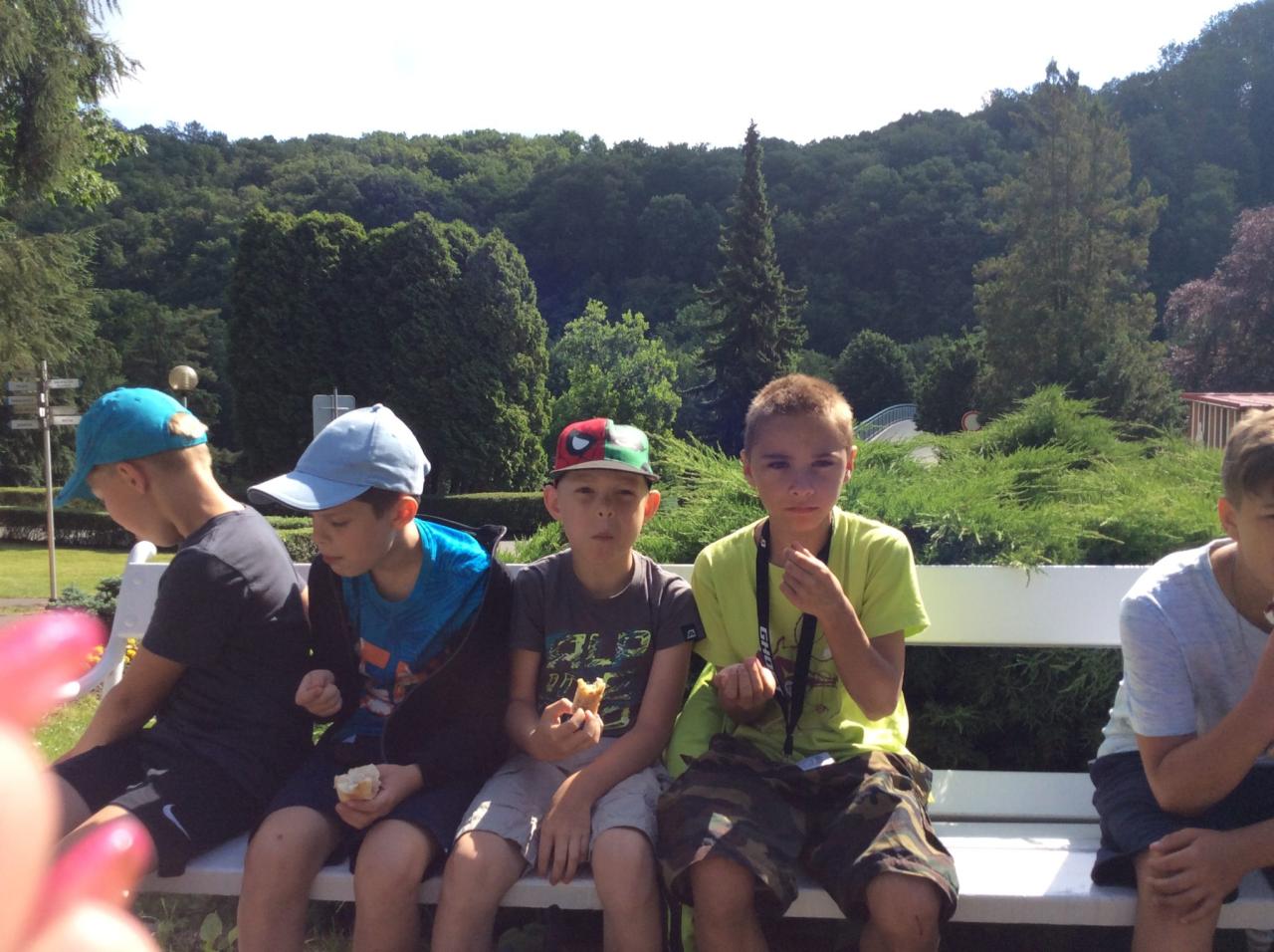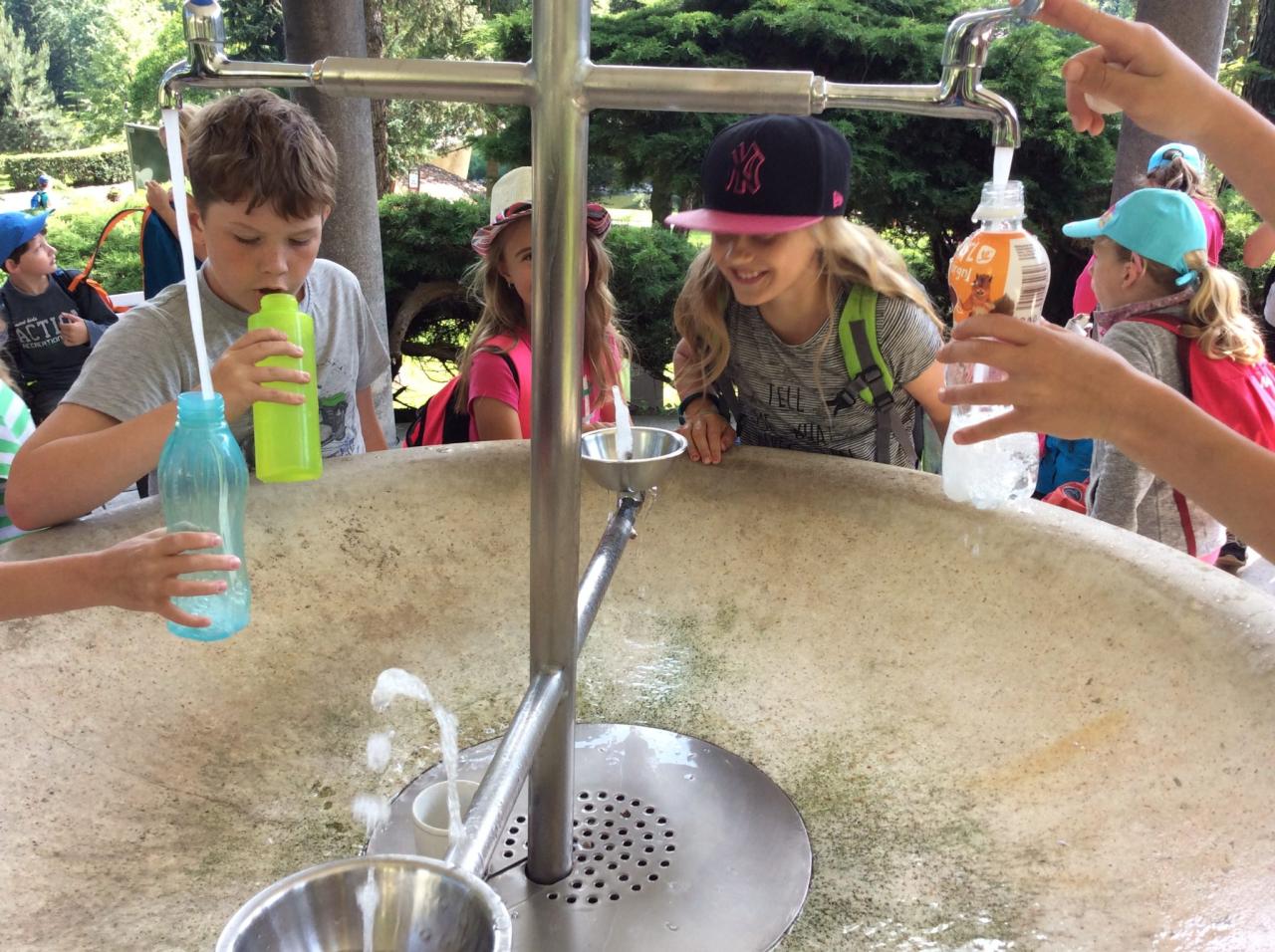 Po velmi příjemné prohlídce a získání zajímavých informací opět vyšli z tajuplných jeskyní rovnou na lázeňskou kolonádu, kde se odměnili spoustou dobrot a dárečků pro své blízké. Ochutnali i chuť zdejší minerální vody. Kolonáda je na levém břehu řeky Bečvy, kde sídlí divoké kačeny. I ty byly zdrojem zábavy a pozorování dětí. Jejich letecká akrobacie a chuť k jídlu se moc zachytit fotografií nepodařilo. Únava dnešního dne se projevila při zpáteční jízdě domů.