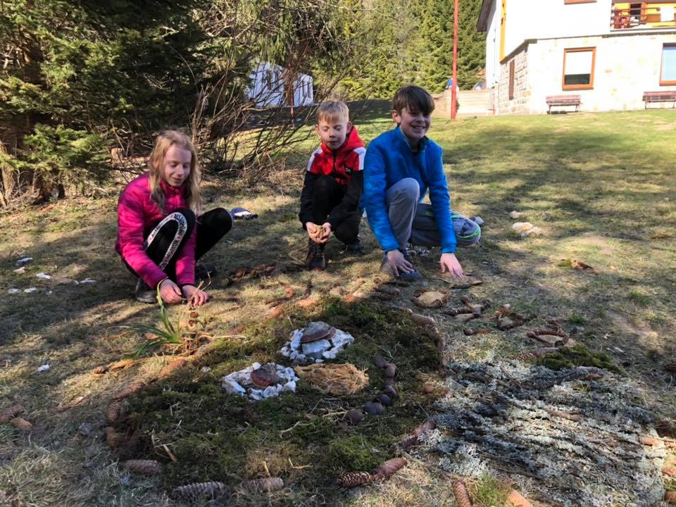V čase volna se hodně chytily deskové hry, kterých jsme přivezli celou bednu, někdo si čte, někdo hraje karty. Včera bylo krásné počasí, i když to ale na fotkách vypadá jako teplo, zdání klame. Na sluníčku je příjemně, ale jak zajdeme do stínu nebo do lesa, je opravdu zima.