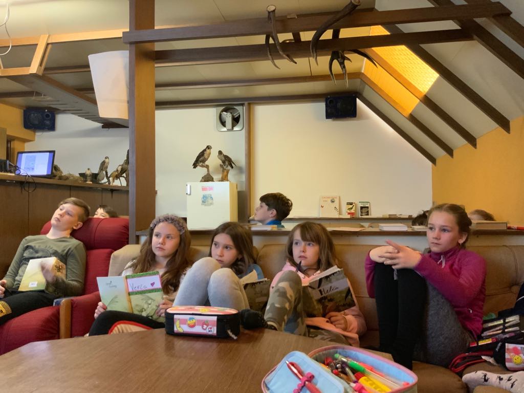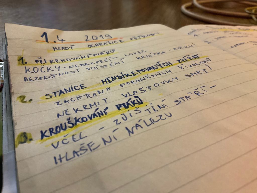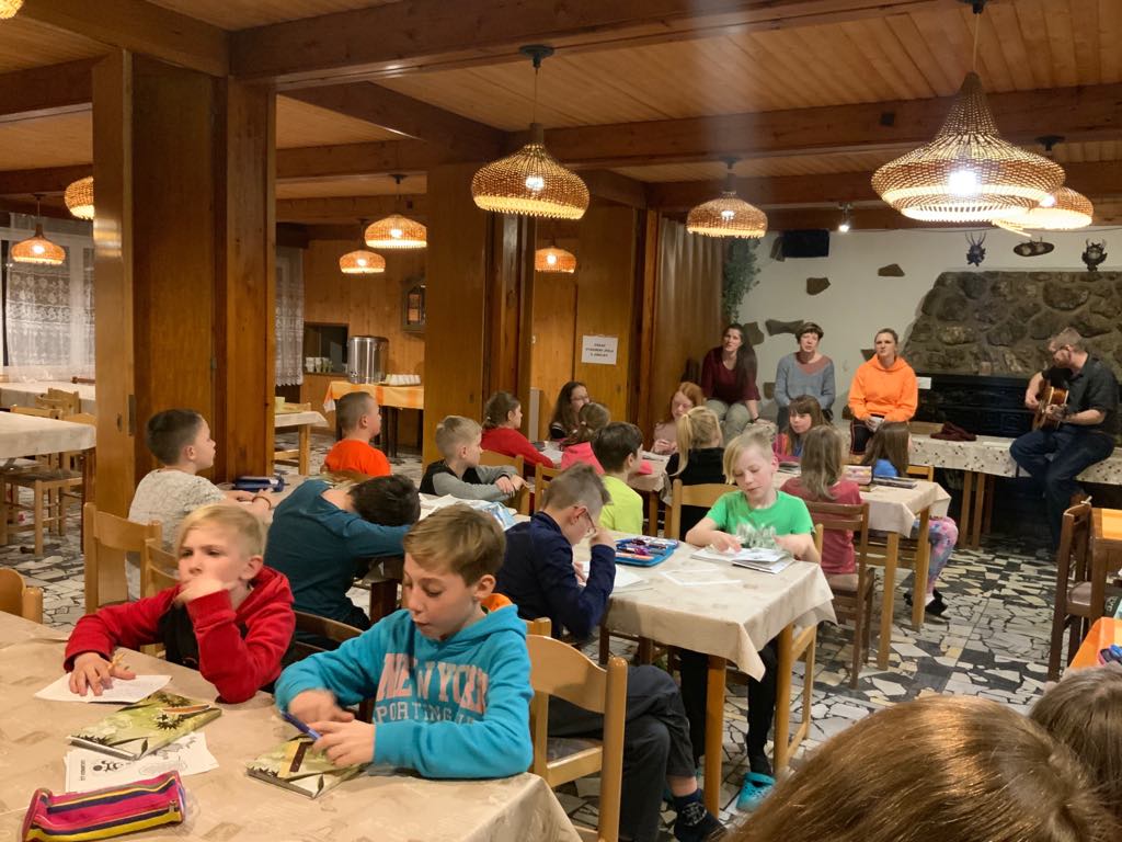 Na závěr jsme zrekapitulovali den, zapsali si zážitky do lesního deníku a zazpívali si na dobrou noc s panem ředitelem.