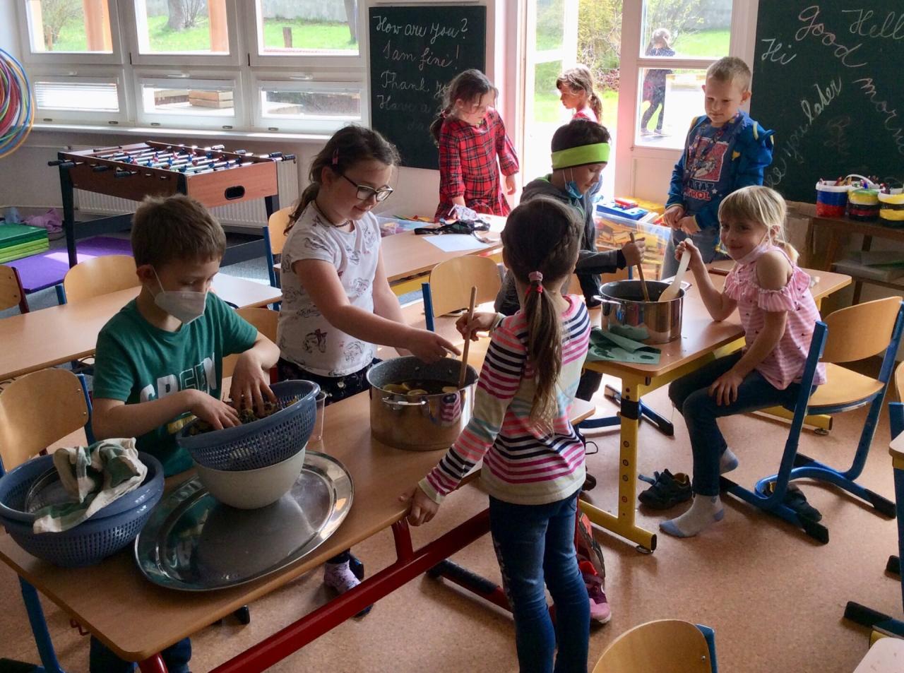 A protože víme, že v jarních bylinách je spousta síly a energie, rozhodli jsme se, že si vyrobíme kouzelný léčivý elixír. Stačí nasbírat tisíc hlaviček sedmikrásek, nechat je 24 hodin louhovat v převařené vodě, doředit třtinovým cukrem, ochutit citrónem a je hotovo. A až ho vypijeme, budeme na sebe koukat, jak jsme 7 x krásnější.