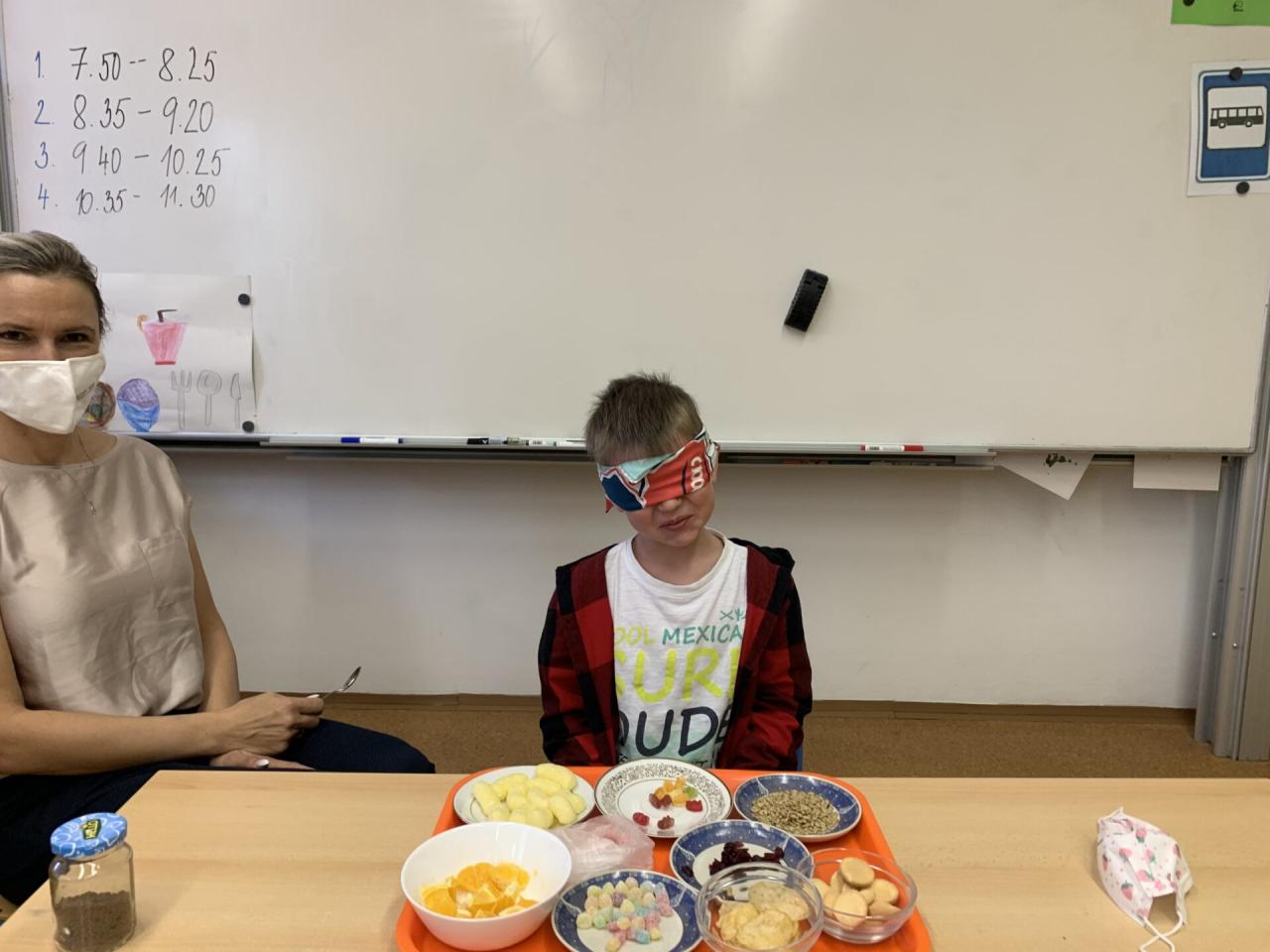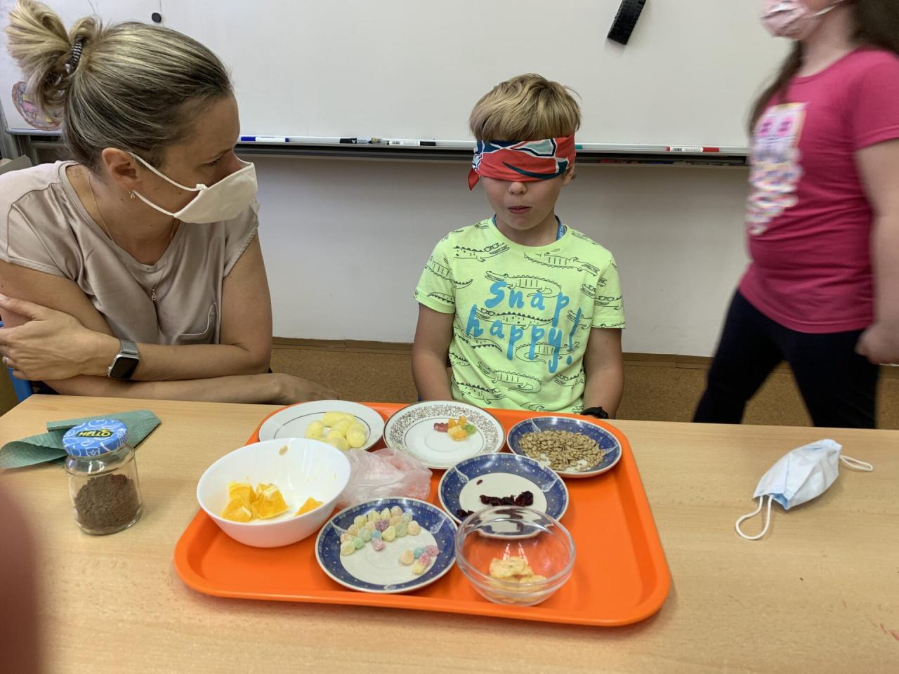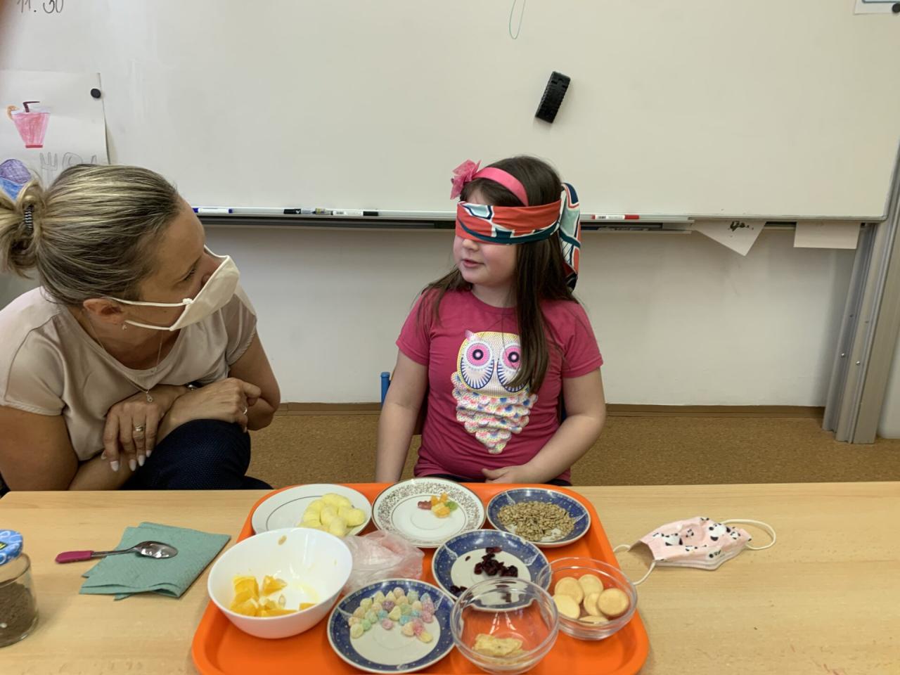 A když jsme si povídali o CHUTI, tak co by to bylo, kdybychom si tu naši chuť trošku nevyzkoušeli na „vlastní kůži“. Zájem dětí byl tak veliký, že se poctivě vystřídali v ochutnávce a v rozpoznávání čtyřech základních chutí úplně všichni.