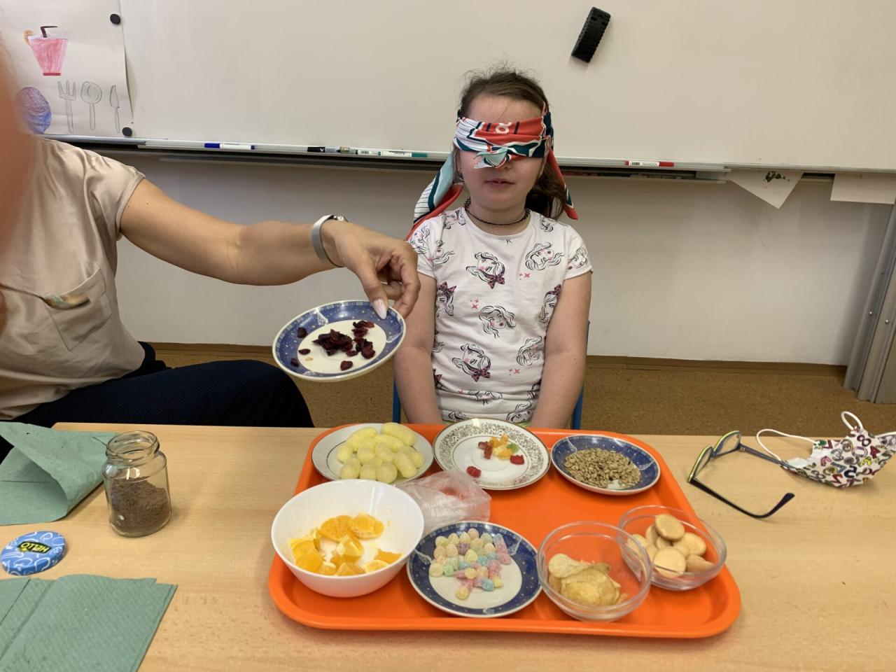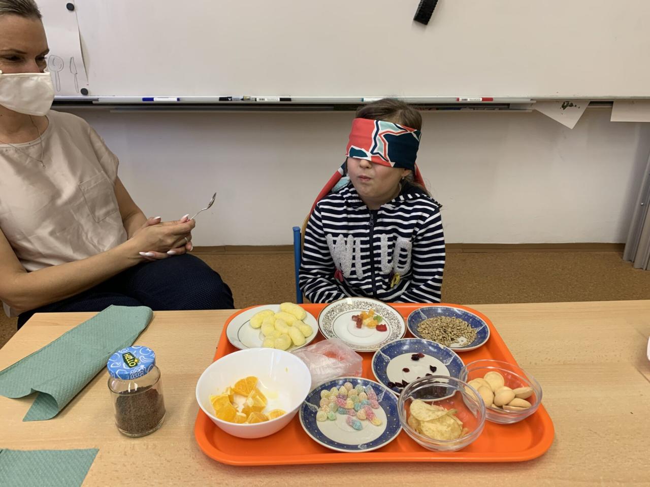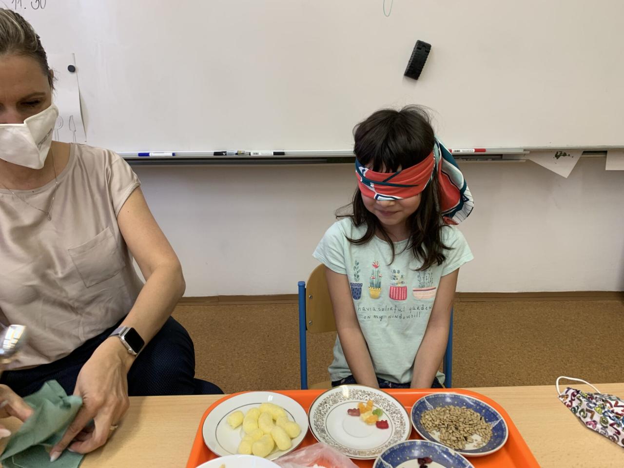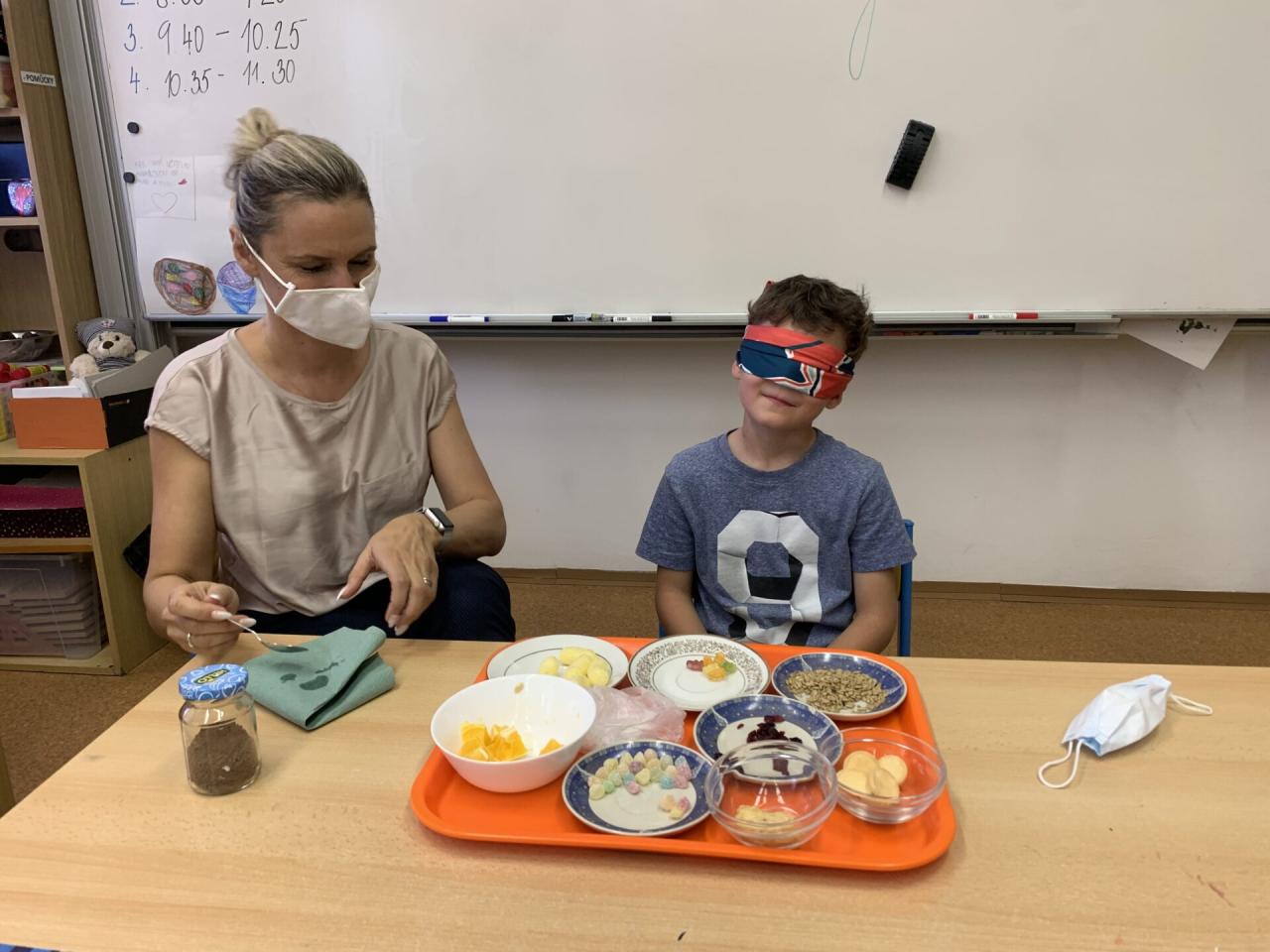 A když jsme si povídali o CHUTI, tak co by to bylo, kdybychom si tu naši chuť trošku nevyzkoušeli na „vlastní kůži“. Zájem dětí byl tak veliký, že se poctivě vystřídali v ochutnávce a v rozpoznávání čtyřech základních chutí úplně všichni.