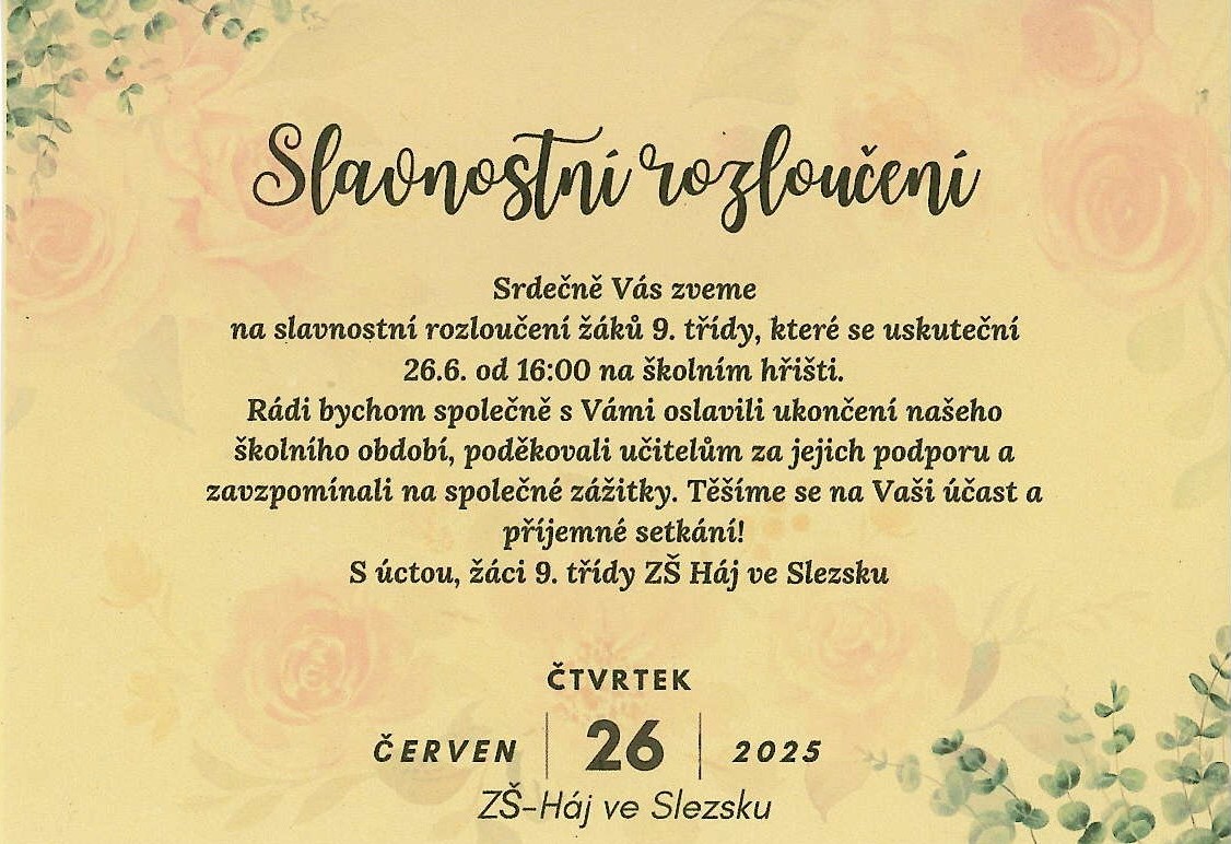 Slavnostní rozloučení žáků 9. třídy